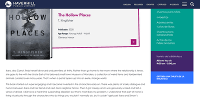 - Users can toggle between English and Spanish languages, though some content, e.g. book review text, is not translated into Spanish.